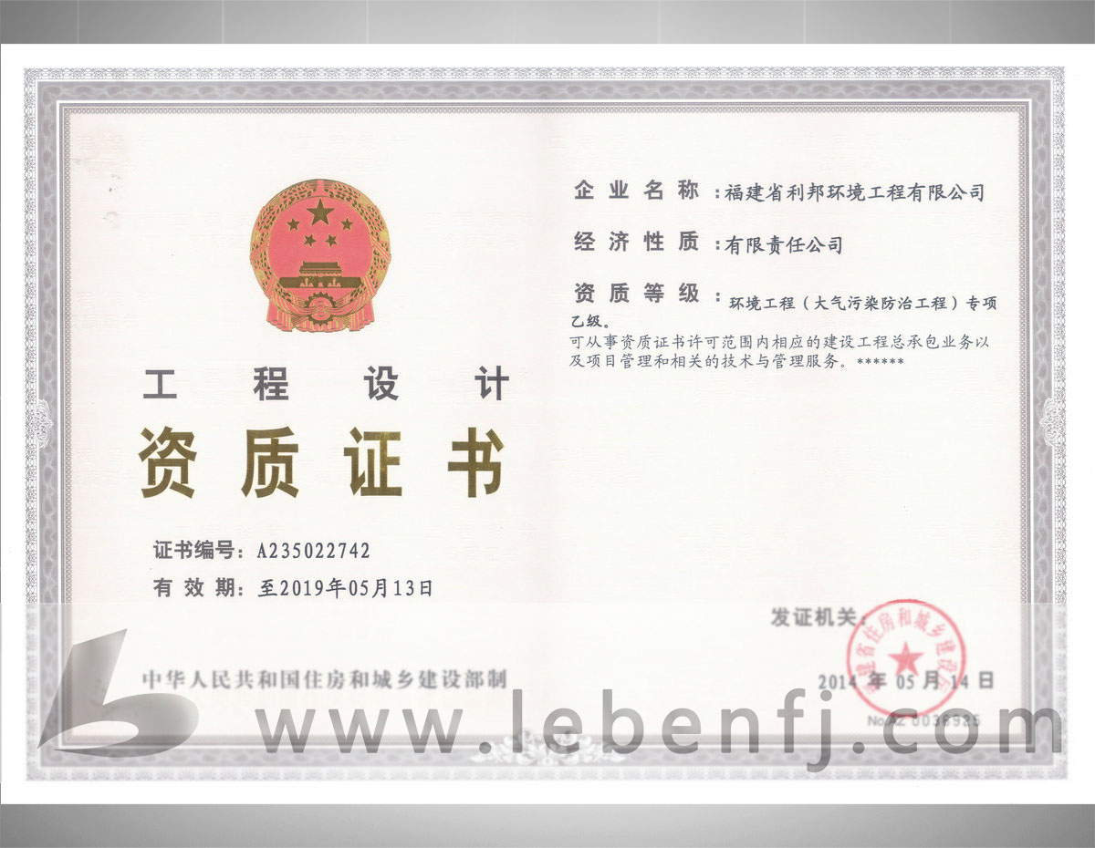 環境工程設計專項資質(乙級)